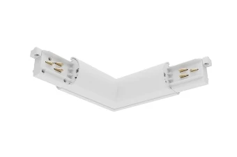 Lytespan Round Track accessory, L-feed connector, polarity ridge is in the inner side. Aluminium and polycarbonate body, copper alloy contacts. White. Please check the polarity diagram on selling sheet. This accessory cannot be used to power up the track.