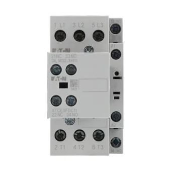 Contacteur de puissance, Application : Contacteurs pour moteurs, Appareils complets jusqu’à 170 A, Catégorie d’utilisation : AC-1 : Charges non inductives ou faiblement inductives, fours à résistance, NAC-3 : Moteurs à cage : démarrage, arrêt en cours de fonctionnement, AC-4 : Moteurs à cage : démarrage, freinage par contre-courant, inversion brutale, marche par à-coups, technique de raccordement : Bornes à vis, Remarques : Convient également aux moteurs appartenant à la classe de rendement IE3., Les appareils compatibles avec la classification IE3 sont reconnaissables au logo apposé sur leur emballage., Courant assigné d’emploi AC-3 380 V 400 V: Ie= 32 A, Courant assigné d’emploi CA-1 Courant thermique conventionnel à l’air libre, tripolaire