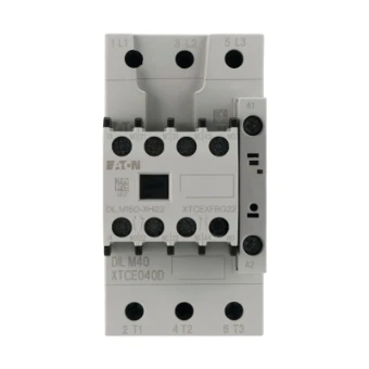 Contacteur de puissance, Application : Contacteurs pour moteurs, Appareils complets jusqu’à 170 A, Catégorie d’utilisation : AC-1 : Charges non inductives ou faiblement inductives, fours à résistance, NAC-3 : Moteurs à cage : démarrage, arrêt en cours de fonctionnement, AC-4 : Moteurs à cage : démarrage, freinage par contre-courant, inversion brutale, marche par à-coups, technique de raccordement : Bornes à vis, Remarques : Convient également aux moteurs appartenant à la classe de rendement IE3., Les appareils compatibles avec la classification IE3 sont reconnaissables au logo apposé sur leur emballage., Courant assigné d’emploi AC-3 380 V 400 V: Ie= 40 A, Courant assigné d’emploi CA-1 Courant thermique conventionnel à l’air libre, tripolaire