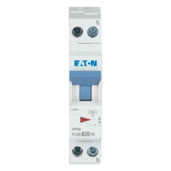 Installatieautomaat (MCB), PLN6, 1-polig + N, afschakelkarakteristiek: B, nominale stroom In: 20 A, nominaal schakelvermogen volgens IEC/EN 60898-1: 6 kA, Schakelapparatuur voor woningen en bedrijfstoepassingen