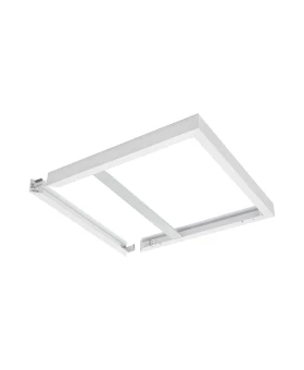 Cadres de montage en saillie renforcés pour Panel. Caractéristiques du produit: Cadre en aluminium extrudé. Cadres de montage disponibles en hauteur de 75 mm (H75) ou 50 mm (H50). Disponible en blanc (RAL9003) ou noir (RAL9005). Avantages du produit: Montage facile grâce aux coins magnétiques préassemblés. Traverse pour une meilleure stabilité. La version H50 au design fin convient aux Panel d'une hauteur totale de 38 mm (panneau + alimentation). Zones d'application: Versions H75 adaptées à tous les panels LEDVANCE. Versions H50 adaptées uniquement pour les Panel Biolux et Protect de LEDVANCE.