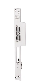 Ouvre-porte électrique avec guide de pêne intégré dans la huisserie, en face du pêne demi-tour d’une serrure mécanique, pour le verrouiller ou le déverrouiller. Le guide de pêne pousse le pêne demi-tour hors du levier de l’ouvre-porte électrique, de sorte que la porte puisse être déverrouillée sans avoir à réaliser des découpes disgracieuses dans la huisserie. La têtière longue à lèvre convient pour huisseries en bois et a une découpe pour le pêne dormant afin qu’il puisse être verrouillé mécaniquement. La têtière comporte également une signalisation de pêne dormant. Celle-ci vous permet de voir si la porte est verrouillée par le pêne dormant ou, par ex., d’armer l’alarme.