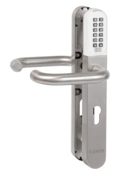 Flexess Aero Extra est une garniture de porte avec clavierà code et combinée avec un lecteur de badges qui peut êtremontée sans difficulté sur des serrures mécaniques. FlexessAero Extra fonctionne avec des batteries ; aucun câblagen’est donc nécessaire. L’actionnement des garnitures estpossible à l’aide d’un code de votre choix ou de badgesMIFARE®. La programmation est simple et peut se faire sanséquipement supplémentaire. Il est toujours possible d’utiliserla béquille du côté intérieur.Flexess Aero Extra est équipé d’une indication acoustiqueet d’un éclairage d’état et est étanche conforme à la classede protection IP68, donc adapté pour une installation enextérieur. La serrure peut toujours être ouverte et verrouilléeà l’aide de la clé par l’intermédiaire du cylindre optionnel.