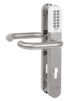 Flexess Aero Extra est une garniture de porte avec clavierà code et combinée avec un lecteur de badges qui peut êtremontée sans difficulté sur des serrures mécaniques. FlexessAero Extra fonctionne avec des batteries ; aucun câblagen’est donc nécessaire. L’actionnement des garnitures estpossible à l’aide d’un code de votre choix ou de badgesMIFARE®. La programmation est simple et peut se faire sanséquipement supplémentaire. Il est toujours possible d’utiliserla béquille du côté intérieur.Flexess Aero Extra est équipé d’une indication acoustiqueet d’un éclairage d’état et est étanche conforme à la classede protection IP68, donc adapté pour une installation enextérieur. La serrure peut toujours être ouverte et verrouilléeà l’aide de la clé par l’intermédiaire du cylindre optionnel.