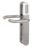 Flexess Aero Extra est une garniture de porte avec clavierà code et combinée avec un lecteur de badges qui peut êtremontée sans difficulté sur des serrures mécaniques. FlexessAero Extra fonctionne avec des batteries ; aucun câblagen’est donc nécessaire. L’actionnement des garnitures estpossible à l’aide d’un code de votre choix ou de badgesMIFARE®. La programmation est simple et peut se faire sanséquipement supplémentaire. Il est toujours possible d’utiliserla béquille du côté intérieur.Flexess Aero Extra est équipé d’une indication acoustiqueet d’un éclairage d’état et est étanche conforme à la classede protection IP68, donc adapté pour une installation enextérieur. La serrure peut toujours être ouverte et verrouilléeà l’aide de la clé par l’intermédiaire du cylindre optionnel.