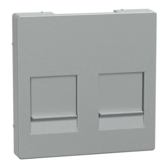 Central plate f. 2-gang modular jack w. dust slide, aluminium,