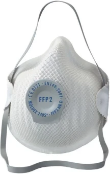Filtermasker Moldex-2405 FFP2.Filtermasker Moldex-2405-Classic FFP2 NR D, EN149:2001. Tegen schadelijke fijnstoffen, rook en nevels en olie gebaseerde aërosolen Een zeer goede pasvorm en hoogwaardige aansluiting op het gelaat door de ActivForm afsluiting en DuraMesh buitenschaal. Tevens voorzien van Klima uitademventiel. Dit geeft een minimalisering van de uitademweerstand. De spanning op de draagband is instelbaar. 100% PVC-vrij.