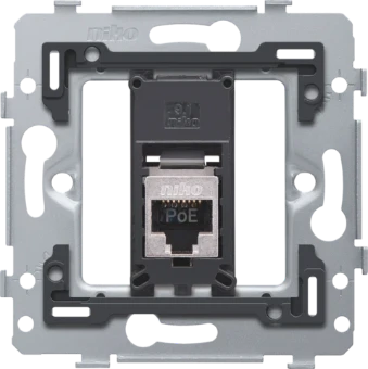 Ce mécanisme avec 1 prise RJ45 STP Cat. 6A, prêt pour l'alimentation PoE++, en modèle plat, sert à établir une connexion réseau avec 1 appareil pour des applications de téléphonie, Ethernet, IP, PoE ou internet. Grâce à sa qualité supérieure, ce type permet en plus de transmettre des signaux de télédistribution pour des images TV analogiques, numériques et interactives. Le mécanisme est connecté en étoile sur l’armoire de connexion centrale à l’aide d’un câble du même type de performance. Le blindage permet à la connexion de mieux résister aux brouillages. Les dimensions intérieures du socle sont de 45 x 45 mm et ses dimensions extérieures de 71 x 71 mm et il est doté de fixation par vis. Un adaptateur PoE est nécessaire pour transporter à la fois les données et l'alimentation via le connecteur. Un adaptateur PoE peut être à la fois un injecteur PoE et un répartiteur PoE. Un set de finition d’une couleur au choix doit être commandé séparément. Cet article est protégé par au moins un br