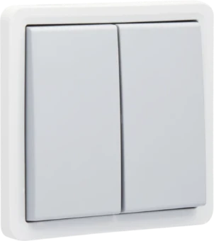 Cet interrupteur double allumage est pourvu avec bornes à connexion rapide et est placé dans un boîtier de montage étanche aux projections d’eau. L’ensemble est étanche aux projections d’eau, ce qui le rend particulièrement approprié pour une utilisation dans les locaux humides et les environnements riches en ammoniac. Combinaison de couleurs: gris clair avec touche gris foncé.