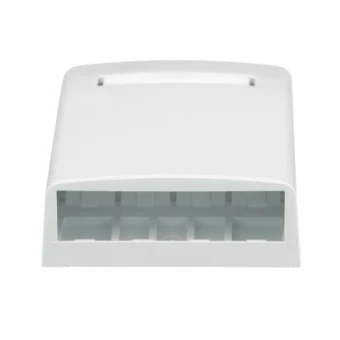 The Mini-Com® Surface Mount Box accepts four Mini-Com Modules. The box offers a variety of mounting options using adhesive tape, screws, or optional magnet. The box includes label pocket for easy identification and is white.