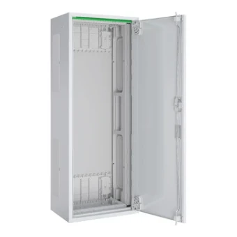 Deze PrismaSeT XL behuizing is een lege wandgemonteerde behuizing. Deze metalen kast is ontworpen om 1 veld van 5 rijen van 12 modules van 18mm te installeren. Het kan alle types van modulaire schakeluitrustingen omvatten. Dit omhulsel is bestemd voor installatie binnen. De IP-beschermingsgraad is IP44. Het is voorzien van een volle deur. De kleur van de kast, de afdekplaat en de deur is wit (RAL 9016). Het kan zij aan zij of op elkaar worden geplaatst. Deze behuizing is bedoeld voor woningen en tertiaire sectoren. De kabels kunnen via de boven- of onderzijde van het omhulsel worden ingevoerd. De elektrische isolatieklasse is klasse II (dubbel geïsoleerd). De ingangsstroom is tot 400A. Dit product voldoet aan de norm DIN EN IEC 61439, DIN EN 62208 De totale afmetingen zijn (B) 300mm x (H) 800mm x (D) 210mm. De behuizing en de deur zijn gemaakt van gepoedercoat staal. De IK-beschermingsgraad is IK10.