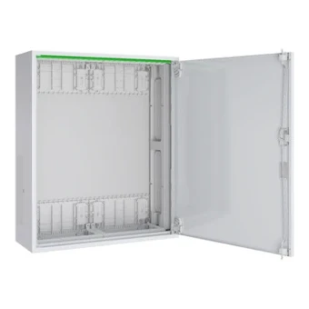 Deze PrismaSeT XL behuizing is een lege wandgemonteerde behuizing. Dit metalen omhulsel is ontworpen om 2 velden van 4 rijen van 12 modules van 18mm te installeren. Het kan alle types van modulaire schakeluitrustingen omvatten. Dit omhulsel is bestemd voor installatie binnen. De IP-beschermingsgraad is IP44. Het is voorzien van een volle deur. De kleur van de kast, de afdekplaat en de deur is wit (RAL 9016). Het kan zij aan zij of op elkaar worden geplaatst. Deze behuizing is bedoeld voor woningen en tertiaire sectoren. De kabels kunnen via de boven- of onderzijde van het omhulsel worden ingevoerd. De elektrische isolatieklasse is klasse II (dubbel geïsoleerd). De ingangsstroom is tot 400A. Dit product voldoet aan de norm DIN EN IEC 61439, DIN EN 62208 De totale afmetingen zijn (B) 550mm x (H) 650mm x (D) 210mm. De behuizing en de deur zijn gemaakt van gepoedercoat staal. De IK-beschermingsgraad is IK10.