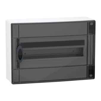 Deze Prismaset XS behuizing is een opbouwmontage distributiebehuizing. Deze kunststof behuizing is samengesteld uit 1 rij van 18 modules van 18mm. Het kan alle types van modulaire schakeluitrustingen omvatten. Dit omhulsel is bestemd voor installatie binnen. De IP-beschermingsgraad is IP40 gesloten deur. Het is voorzien van een transparante rookdeur. De kleur van het omhulsel en de afdekplaat is wit (RAL 9003). Dit gebruiksklare omhulsel is bedoeld voor gebruik in residentiële en tertiaire sectoren. Het is ontworpen voor elektriciens, en biedt ergonomie en flexibiliteit van de installatie. De kabels kunnen via de boven- of onderzijde van het omhulsel worden ingevoerd door verwijderbare kabelinvoerplaten. Het maakt invoer via kabel, buis of koker mogelijk. Het is uitgerust met 1 achterplaat en 1 DIN-rail. De rail is verwijderbaar en vergemakkelijkt de bedrading en het onderhoud. Het wordt geleverd met 1 aardingsklemmenblok. Dit klemmenblok biedt 14 uitgangen (3x25mm²+11x4mm²). Het wordt