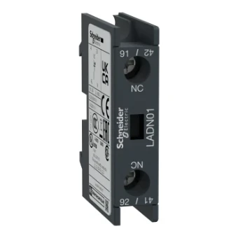 TeSys Deca - hulpcontactblok, voor contactoren LC1D, LC1F. Voorzien van 1NC-contacten (NC spiegelgecertificeerd) tot 10A/690V AC, aansluiting met schroefklemmen. Frontruimte met clips voor een hoge betrouwbaarheid en duurzaamheid. Multi-standaarden gecertificeerd (IEC, UL, CSA, CCC, EAC), Green Premium-conform (RoHS/REACh).