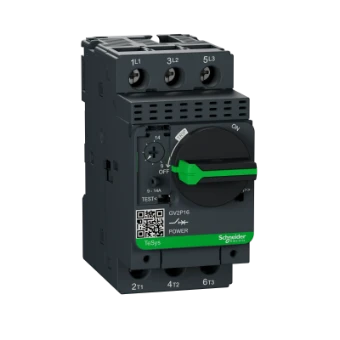 Deze TeSys GV motorbeveiligingsschakelaar is voorzien van 3 polen (3P), heeft een toegekende bedrijfsstroom van 14A/690V en is geschikt voor 3-fase motortoepassingen tot 5,5kW@400V. Deze vermogensschakelaar biedt een thermisch-magnetische bescherming met een thermisch instelbereik van 9-14A, een magnetische afschakeling bij 13xIn en een hoog uitschakelvermogen van 15ka Icu bij 400V. Aansluiting via schroefklemmen. Start-stop bediening door draaiknop gegarandeerd voor 100.000 cycli AC-3. Multi-standaard gecertificeerd (IEC, UL, CSA, CCC, EAC, Marine, ATEX) en voorzien van het Green Premium ecolabel (RoHS/REACh).