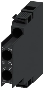 auxiliary switch, lateral, 2 NC, on the left: 41/42, 51/52, on the right: 21/22, 31/32, current path: 1 NC, 1 NC, screw terminal, for contactors 3RT2.1 auxiliary switch SIRIUS 3RH29 for the expansion of auxiliary contacts in the control circuit. 3RH29 auxiliary switches can be laterally mounted onto 3RT2 contactors without tools regardless of their size. The 3RH19/3RH29 auxiliary switches are available as versions for front or lateral mounting, with up to four instantaneous contacts or up to two leading NO and NC contacts. The auxiliary switches can be designed as positively driven contacts in 3RH contactor relays or also as mirror contacts in the case of3RT power contactors. All of them are available with screw terminal and spring-type terminal. Simple, efficient and always up to date - SIRIUS modular system.