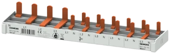 compact Pin Busbar, 10mm2 connection: 3p/N (RCCB N-left) 1x RCCB 4-pole + 6x compact device 1MW touch protected 10 MW cuttable Pin busbar SENTRON 5ST3 as additional components for residual current devices and miniature circuit breakers. These additional components can be mounted universally. They are easy and convenient to install and connect. Thanks to the standard touch protection, safety is reliably ensured during installation. Optimized technology for your safety - only from Siemens.