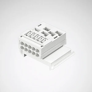 Connecteur femelle à 5 pôles, pour le raccord électrique sans outil entre des conducteurs posés après coup par le client dans le profil-support et les platines-appareillages