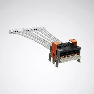 voedingselement voor flexibele aansluitleidingen. 13-polige uitvoering, kabeldiameter 2,5 mm2. Levering omvat een voeding en beschermkappen voor open geleiders (2 stuks).
