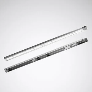 Slank basiselement voor pendelmontage. Met vlakliggende indirecte component met translucide afscherming uit PMMA. Lengte van het basiselement 1.300 mm. Het basiselement voor pendelmontage kan worden opgehangen met afzonderlijk te bestellen toebehoren. Geschikt voor lichtlijntoepassing door voorgemonteerd lichtlijnkoppelstuk. Het lichtlijnkoppelstuk moet in de voedingszone aan het begin van de lichtlijn gedemonteerd worden door de schroefverbinding los te maken. Flexibel inzetbaar in combinatie met alle YONOS-armatuurmodules, lichtmanagementmodules en decoratieve elementen. Het basiselement wordt daarbij volledig omsloten. Met indirecte, symmetrische extreem brede lichtverdeling. Armatuurlichtstroom en lichtkleur vast ingesteld. Opgegeven lichtstroom van 1.200 lm per meter, Opgegeven lichtstroom per plafondopbouw 1.520 lm, aansluitvermogen 11 W, maximale lichtrendement van de armatuur 145 lm/W, Lichtkleur Warmwit, kleurtemperatuur (CCT) 3000 K, algemene kleurweergave-index (CRI) 80, kleurplaatstolerantie (initial MacAdam) ≤ 3SDCM. Gemiddelde levensduur L90 (tq 25 °C) = 50.000 h, gemiddelde levensduur L80 (tq 25 °C) = 100.000 h. De lichtbron kan vervangen worden overeenkomstig de eisen inzake ecologisch ontwerp (EU-Verordening 2019/2020). De optiek kan vervangen worden overeenkomstig de eisen inzake ecologisch ontwerp (EU-Verordening 2019/2020). Toelaatbare omgevingstemperatuur (ta) 25 °C. Profiel uit aluminium zonder lakkering voor minder CO₂-emissies en een hoog recyclingpercentage. Beschermcategorie (DIN EN 60598-1): I, Beschermklasse (DIN EN 60598-1): IP20. Met 5-aderige doorvoerbedrading. kabeldiameter 5 x 1,5 mm². Gereedschaploze elektrische contactverbinding dankzij connectoren die zijn aangebracht om de 650 mm om een flexibele positionering van de armatuurmodules en modules mogelijk te maken. Voedingsmogelijkheden aan de achterzijde door het basiselement of aan de kopse zijde door de afzonderlijke eindkap. Mechanische verbinding dankzij geoctrooieerde kliksluiting voor een snelle en veilige montage van armatuurmodules en modules. De elektrische en mechanische verbinding komt tot stand in één montagestap. Met elektronische transformator, digitaal dimbaar (DALI). Hulpapparaat volgens DALI-2-standaard (EN 62386). Het hulpapparaat kan vervangen worden overeenkomstig de eisen inzake ecologisch ontwerp (EU-Verordening 2019/2020). Het product voldoet aan de fundamentele eisen van de geldende EU-richtlijnen en de productveiligheidswet en draagt de CE-markering.