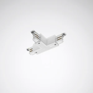 Connecteur en T pour trois segments de rail conducteur triphasés. blan