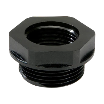 Reduceerring voor het aanpassen van de schroefdraadmaat tussen twee op elkaar aansluitende onderdelen, zoals kabelwartel en apparaat.