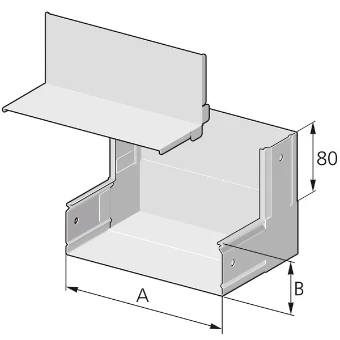 Hoekstuk 90°, met deksel binnenzijde, B 80mm, H 60mm, staal verzinkt