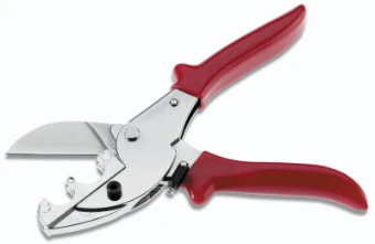 Universele schaar voor buizen en slangen van kunststof, schaar als nr. 12 0210, met voorgemonteerd snij-inzetstuk nr. 12 0213, om rondprofielen met een diameter van 16 mm (5/8") en 19 mm (3/4") te snijden, in het bijzonder buizen (ribbelbuizen) van hard en flexibel kunststof
