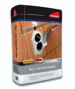 Gips voor bouwers en elektriciens, voor het plaatsen van contactdozen, het vullen van gaten, voor reparatie- en installatiewerkzaamheden, pluggen, glad maken en fixeren binnenshuis. Speciaal afgestemd op de behoeften van bouwers en elektriciens. Ook uitstekend geschikt voor vorm- en modelleringswerkzaamheden, verwerkingstijd ca. 15 - 20 minuten, mengverhouding ca. 8 l water/10 kg, houdbaarheid ca. 3 maanden, in papieren zak 25 kg