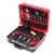 Leerlingskoffer 2004, compleet met 22 gereedschappen, robuuste hardcase gereedschapskoffer voor professioneel gebruik in attractieve tweekleurige uitvoering, twee uitwisselbare kantelsluitingen, twee versterkte metalen klapscharnieren als dekselhouder, openingshoek groter dan 90°, 2 gereedschapsplaten van licht kunststof met diverse opgenaaide steektassen voor handgereedschappen, ruim documentenvak is in de bovenste gereedschapsplaat geïntegreerd, kofferbodem met drie tussenschotten voor meetapparaten, kleingerei, gereedschap, enz., inwendige afmetingen ca. 430 x 340 x 155 mm, gewicht leeg slechts 3200 g, inhoud: Striptang nr. 10 9686, telefoontang, recht nr. 10 9216, combinatietang nr. 10 9336, zijkniptang nr. 10 9574, spanningzoeker nr. 11 1280, sleufkopschroevendraaier nr. 11 7702, dito nr. 11 7704, dito nr. 11 7705, dito nr. 11 7706, kruiskopschroevendraaier nr. 11 7731, dito nr. 11 7732, dito nr. 11 7741, dito nr. 11 7742, kabelmes met houten schaal nr. 12 0052, kabelmes nr. 12 10