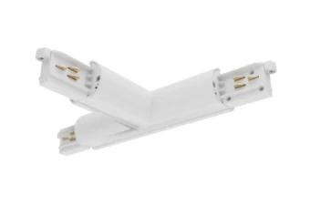 Lytespan Round Track accessory, T-feed connector out-right, polarity ridge is in the outer side. Polycarbonate body, copper alloy contacts. White. Please check the polarity diagram on selling sheet. This accessory cannot be used to power up the track.