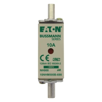 Eaton Bussmann Low Voltage NH NH FUSE 10AMP 690V aM SIZE 000 Zekering, laagspanning, 10 A, AC 690 V, NH000, aM, IEC, dubbele melder, onder spanning staande grepen