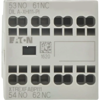 Hulpcontactblokje, met onderling vergrendelde tegenoverliggende contacten, functie: voor standaard toepassingen, 2-polig, aansluittechniek: Push-in klemmen, Ith 16 A, nominale bedrijfsstroom AC-15 220 V 230 V 240 V: Ie= 4 A, nominale bedrijfsstroom AC-15 380 V 400 V 415 V: Ie= 4 A, contacten no = normaal open: 1 no, contacten nc = normaal gesloten: 1 nc, type montage: Frontbevestiging, voor gebruik met: DILA…-PI, DILM7…-PI, DILM9…-PI, DILM12…-PI, DILM15…-PI, DILM17…-PI, DILM25…-PI, DILM32…-PI, DILM38…-PI, DILMP20…-PI, DILMP32…-PI, DILMP45…-PI, DILM8…-PI, DILM11…-PI, DILM14…-PI, type: Hulpcontact voor frontmontage