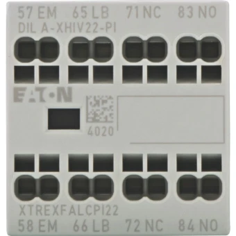 Hulpcontactblokje, functie: voor standaard toepassingen, 4-polig, aansluittechniek: Push-in klemmen, Ith 16 A, nominale bedrijfsstroom AC-15 220 V 230 V 240 V: Ie= 4 A, nominale bedrijfsstroom AC-15 380 V 400 V 415 V: Ie= 4 A, contacten no = normaal open: 1 no, contacten noe: no voorijlend: 1 noe, contacten nc = normaal gesloten: 1 nc, contacten ncl = nc naijlend: 1 ncl, type montage: Frontbevestiging, voor gebruik met: DILA…-PI, DILM7…-PI, DILM9…-PI, DILM12…-PI, DILM15…-PI, DILM17…-PI, DILM25…-PI, DILM32…-PI, DILM38…-PI, DILMP20…-PI, DILMP32…-PI, DILMP45…-PI, DILM8…-PI, DILM11…-PI, DILM14…-PI, type: Hulpcontact voor frontmontage