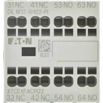 Hulpcontactblokje, met onderling vergrendelde tegenoverliggende contacten, functie: voor standaard toepassingen, 4-polig, aansluittechniek: Push-in klemmen, Ith 16 A, nominale bedrijfsstroom AC-15 220 V 230 V 240 V: Ie= 4 A, nominale bedrijfsstroom AC-15 380 V 400 V 415 V: Ie= 4 A, contacten no = normaal open: 2 no, contacten nc = normaal gesloten: 2 nc, type montage: Frontbevestiging, voor gebruik met: DILA…-PI, DILM7…-PI, DILM9…-PI, DILM12…-PI, DILM15…-PI, DILM17…-PI, DILM25…-PI, DILM32…-PI, DILM38…-PI, DILMP20…-PI, DILMP32…-PI, DILMP45…-PI, DILM8…-PI, DILM11…-PI, DILM14…-PI, type: Hulpcontact voor frontmontage
