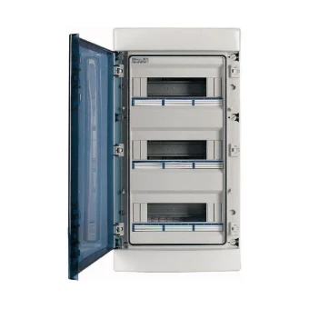 Inst.kast, opb., IP65, 3x12TE, deur transp., polycarbonaat, UV best. +