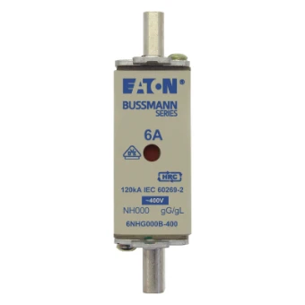 Zekering, laagspanning, 6 A, AC 400 V, NH000, gL/gG, IEC, dubbele meld