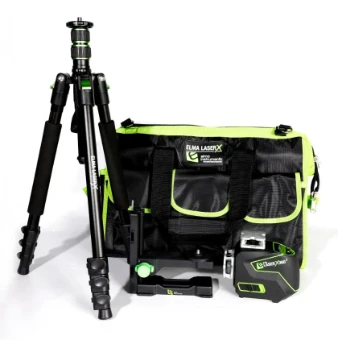Elma 3D Multilijnlaser met groene laser 3x360° tot 40 meter inclusief statief en opbergtas. Elma's 3D multilijnlasers zijn ideaal voor nauwkeurige installatiewerkzaamheden, met een bereik van 40 meter, groene lasers voor binnen en buiten, en zelfnivellering voor precisie. De X360-serie projecteert horizontale, verticale en rechte lijnen met een vergrendelingsfunctie voor schuine hoeken, waardoor installatie eenvoudiger wordt. Veiligheid is gegarandeerd met transportvergrendeling om schade tijdens transport te voorkomen. Inclusief accessoires zoals Li-Ion Batterij, USB-C lader, adapter en magnetische beugel in een handige tas. Gebruikers kunnen met vertrouwen en precisie hun projecten uitvoeren.