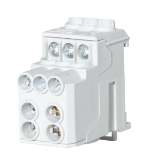 Sub-distribution block. Number of poles 1. Feed terminals: 2x 2.5 - 25 mm². Distribution terminals: 6x 1.5 - 10 mm². Suitable for: CU/AL conductors. Color gray.