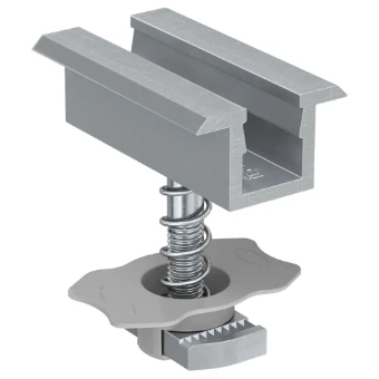 De PM C is een voorgemonteerde middenklem voor de montage van PV-panelen op solarprofielen. De PM C klem is verkrijgbaar in verschillende varianten, afhankelijk van de dikte van het PV-paneel. De klem beschikt over een glijmoer waarmee deze op elke positie in het solarprofiel kan worden geplaatst. De klem beschikt daarnaast over een interne veer welke de omhoog houdt, totdat deze wordt aangedraaid. Dit vergemakkelijkt de positionering van het PV-paneel tijdens montage.