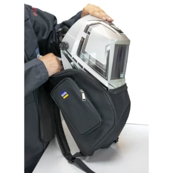 GYS rugtas met plaats voor één lashelm. De tas heeft een extra opbergvak aan de zijkant. Alle opbergruimtes beschikken over een ritssluiting. De rugzak heeft verstelbare schouderbanden en een handvat in de vorm van een lus aan de bovenzijde.