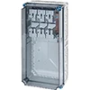Geïsoleerde laagspanningsschakelapparatuur-combinatie in kastbouwvorm conform IEC 61439-2 voor wandopbouw. Kasten moeten geschikt zijn voor buitenopstelling; er moet rekening worden gehouden met de invloed van de weersomstandigheden op de bedrijfsmiddelen. Kastonderdelen en -deksel van slagvast polycarbonaat, halogeen- en siliconenvrij, kleur RAL 7035, transparant deksel met snelsluitingen voor gereedschapsbediening. Brandgedrag conform DIN VDE 0471 Deel 2 – Gloeidraadtest 960 °C. Maximale waterabsorptie 10 mg conform DIN 53473. Beveiligingsmaatregel: dubbelgeïsoleerd (beschermingsklasse II). Merk: HENSEL Mi-verdelers. NH-zekeringbehuizing NH 1, 3-polig, geschikt voor railsystemen 5-polig, Beschermingsgraad: IP 65 volgens DIN EN 60529