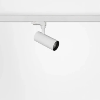 Compact aluminium 3-phase tracklight with powder coating finish. Available with decorative golden, black or white inner ring.