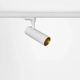 Compact aluminium 1-phase tracklight with powder coating finish. Available with decorative golden, black or white inner ring.