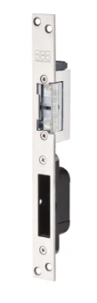 Inbouw elektrische deuropener voorzien van axiale4 mm verstelbare schootvanger welke buiten de behuizingdraait. De deuropener wordt in het kozijn tegenover dedagschoot van een mechanisch slot ingebouwd om deze tevergrendelen of te ontgrendelen.De lange sluitplaat heeft een uitsparing voor de nachtschoot,zodat deze mechanisch kan worden vergrendeld. Tevensis de sluitplaat voorzien van een SKG**® sluitkom voor denachtschoot. Deze zorgt voor extra veiligheid.