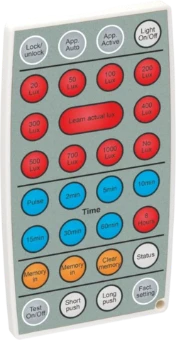 Deze afstandsbediening is geschikt om de mini-aanwezigheids- of mini-afwezigheidsmelder (360°, 230 V) met één kanaal voor inbouw via infrarood in te stellen. Met de afstandsbediening kunnen de fabrieksinstellingen worden gewijzigd, waaronder de daglichtfactor (luxwaarde) en de tijdsduur dat de verlichting ingeschakeld blijft. Bijpassende artikels: 350-20085