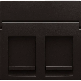 Centraalplaatje voor 2 RJ outlets in een vlakke uitvoering. De centraalplaat bevat een transparant tekstveld waarin je eenvoudig iconen of teksten kan aanbrengen. Afwerkingskleur: dark brown coated.