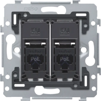 Dit mechanisme met 2 RJ45-aansluitpunten UTP Cat. 6A, klaar voor PoE++, in vlakke uitvoering, dient om netwerkverbinding met 2 apparaten te maken voor telefonie, Ethernet, IP, PoE of internettoepassingen. Elk van de aansluitpunten van het mechanisme wordt in sterconfiguratie aangesloten op de centrale aansluitkast met behulp van een kabel van hetzelfde performantietype. De sokkel heeft binnenafmetingen van 45 x 45 mm en buitenafmetingen van 71 x 71 mm en is uitgerust met schroefbevestiging. Er is een PoE-adapter nodig om zowel data als voeding via de connector te geleiden. Een PoE-adapter kan zowel een PoE-injector als een PoE-splitter zijn. Een afwerkingsset in een kleur naar keuze moet afzonderlijk besteld worden. Dit artikel wordt beschermd door ten minste één octrooi (aanvraag). Zie www.niko.eu/innovation voor meer informatie over octrooien.
