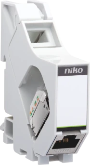 Deze DIN-rail module met afgeschermde RJ45-connector STP Cat. 5E, klaar voor PoE++ dient voor centrale montage van een RJ-aansluitpunt in de aansluitkast. Dit aansluitpunt dient om netwerkverbinding met 1 apparaat te maken voor telefonie, Ethernet, IP, PoE of internettoepassingen. De afscherming zorgt voor een storingsbestendigere verbinding. De DIN-connector wordt in sterconfiguratie aangesloten op het mechanisme met behulp van een kabel van hetzelfde performantietype. Dit biedt een centraal overzicht van alle aansluitpunten over de hele woning.Er is een PoE-adapter nodig om zowel data als voeding via de connector te geleiden. Een PoE-adapter kan zowel een PoE-injector als een PoE-splitter zijn. Een afwerkingsset in een kleur naar keuze moet afzonderlijk besteld worden.