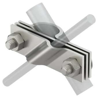 • Voldoet aan de eisen conform NEN-EN-IEC 62305-3• Passend voor aansluiting van ronde geleider Rd 8-10 resp. platte geleider tot FL 40• Met tussenplaat• Gemonteerd met 2 zeskantbouten M10 x 30 en 2 zeskantmoeren M10